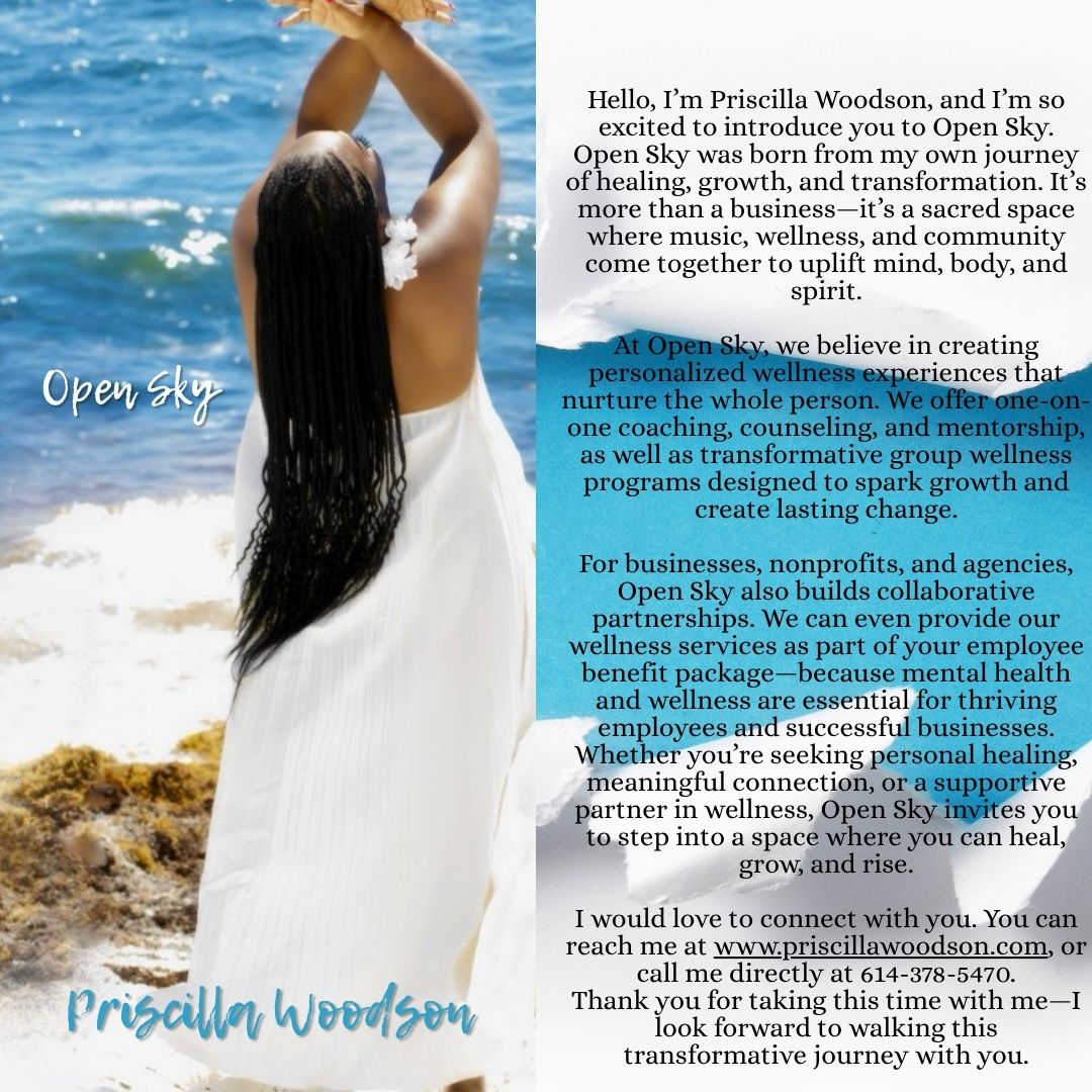 Priscilla Woodson proudly announces the release of her newest single, Open Sky, available now on Spotify, Apple Music, and Amazon Music. Released on December 26, 2024, Open Sky marks a defining moment in Woodson’s artistic journey, inviting listeners to experience a transformative blend of heartfelt lyricism, innovative soundscapes, and the energetic fusion that continues to shape her signature style.